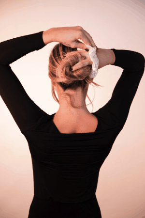 - Attachez vos cheveux en utilisant le scrunchie en soie pour un maintien doux et confortable.